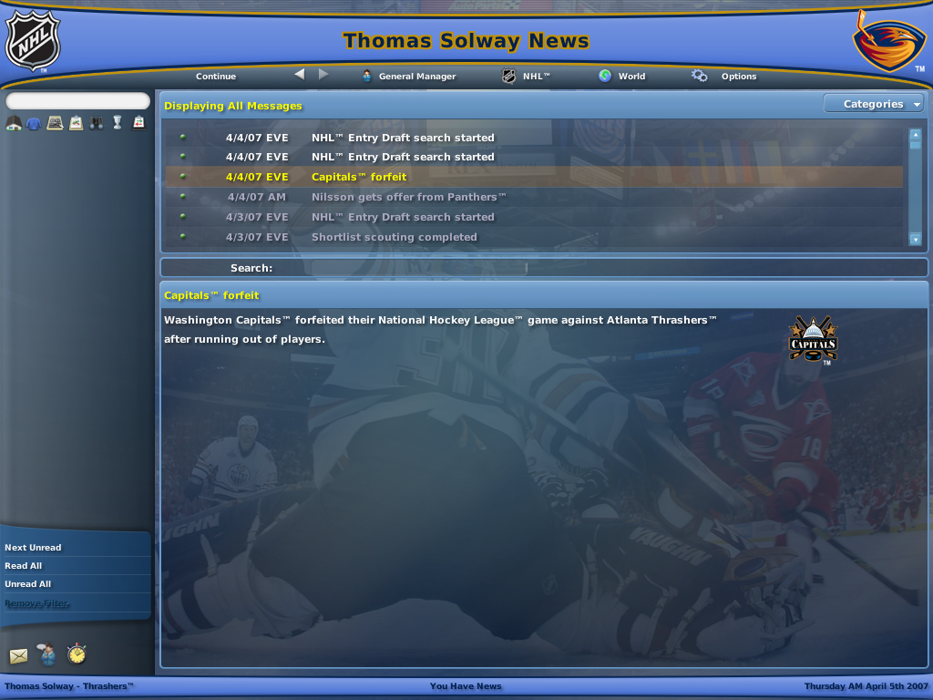 Yes he was signed on 9/3/06 as AGM. It is 3/23/07 in my game so that is more than 6 months according to my calculations. You need a screen shot?bruins72 wrote:Are you still in your first season? Has it been at least 6 months since Backman has been hired? Any new head coach must have already been with the team for 6 months before becoming head coach.blueshirtnParis wrote: Something had to give so out goes Ramsey and in comes the AGM Per Backman. Marc Crawford steps in as AGM and coach in waiting.